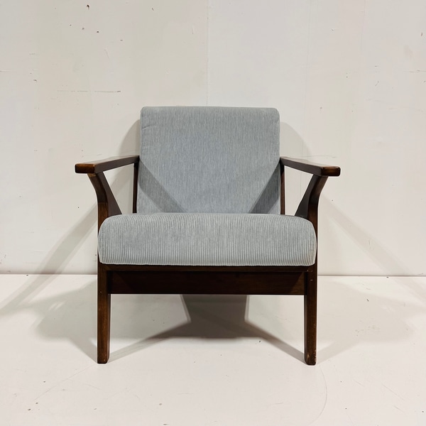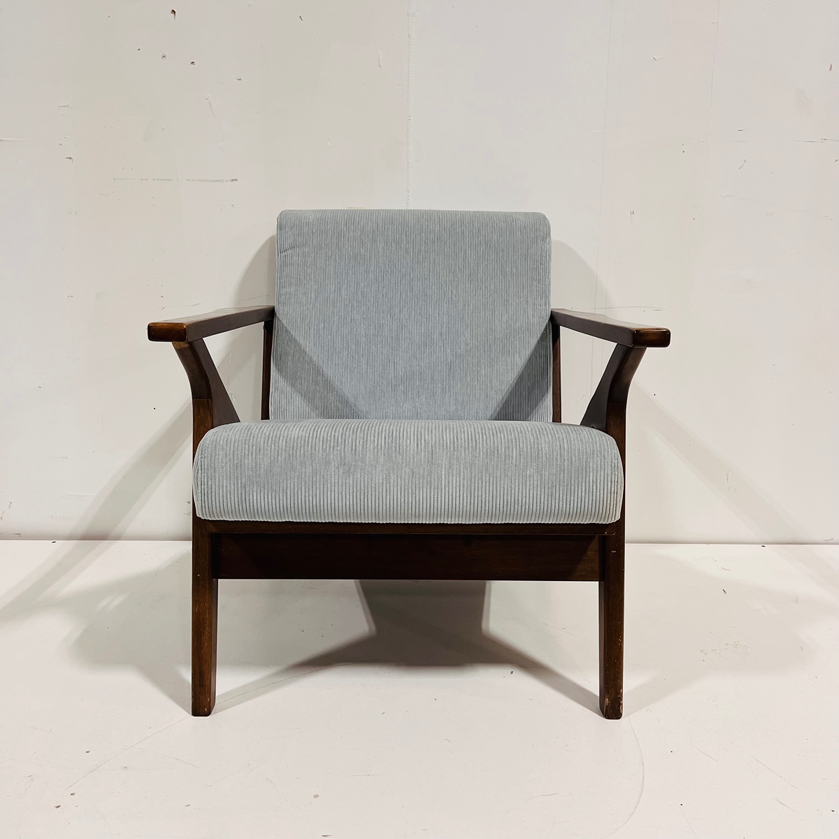 Grey Corduroy Accent Chair with Medium Wood Arms and Legs